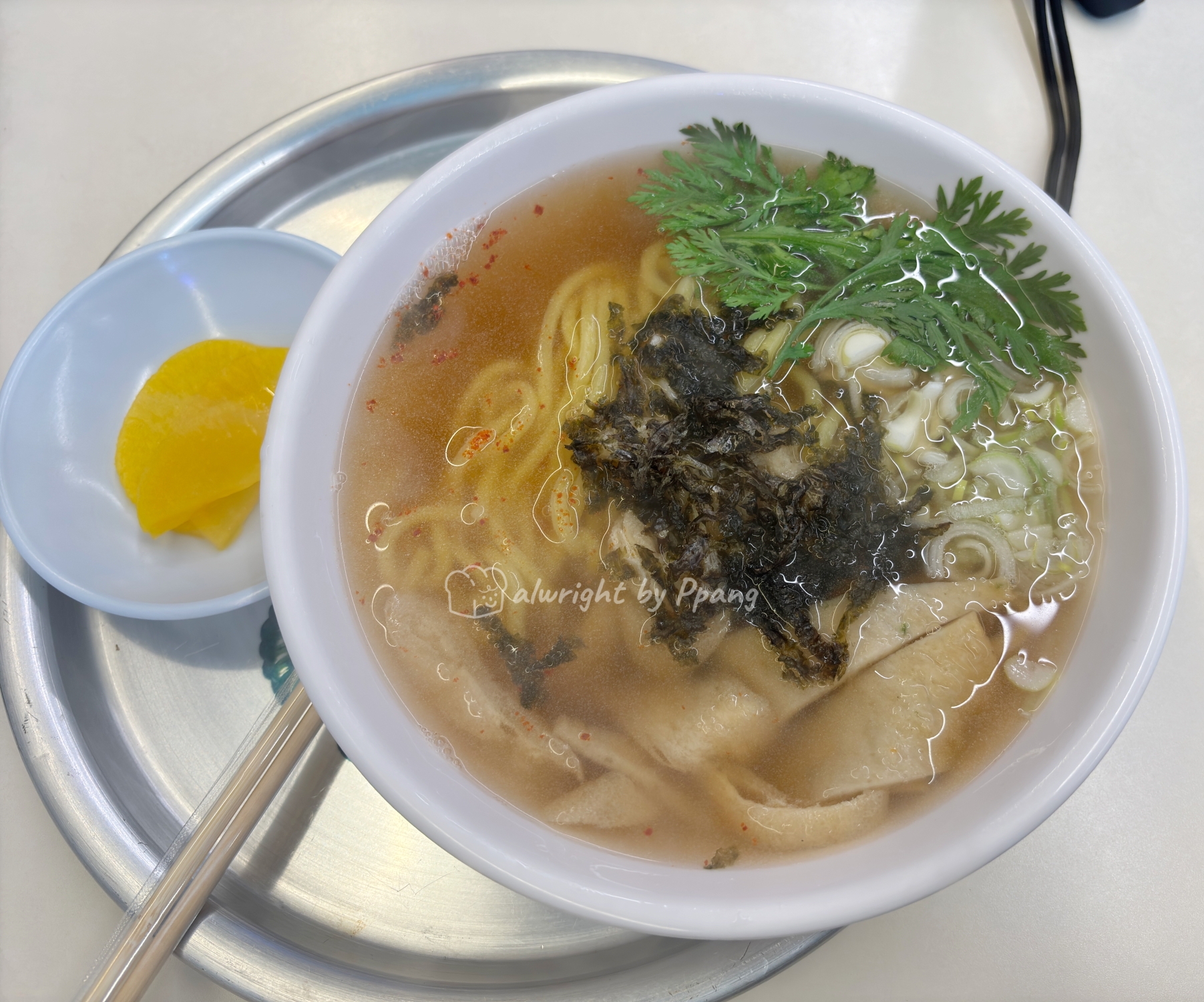 쑥갓이 들어 있어 국물이 한층 업그레이드 되었다. 깔끔하다. 난 맛있게 잘 먹었다.