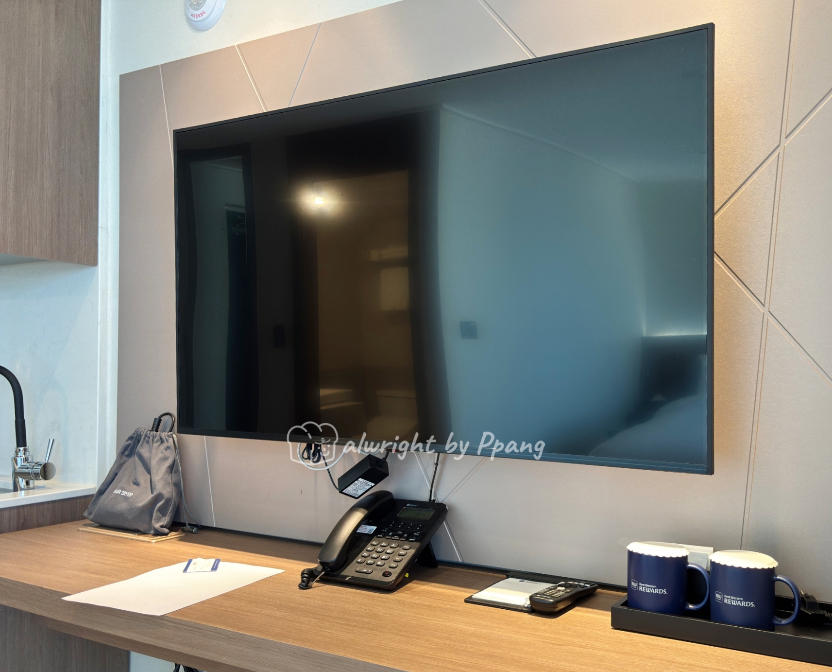 침대 앞쪽 전면에 TV가 있다. 남부럽지 않은 사이즈인 것도 맘에 든다.