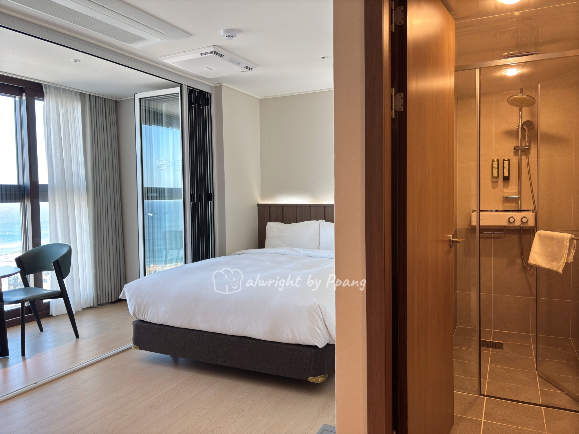 나는 평일 스탠다드 퀸 오션뷰 객실을 5만원대에 예약하였다. 반대편은 청초호수뷰로 바다는 아니지만 물이 보이는 객실이고 오션뷰 보다 약간 저렴하다.