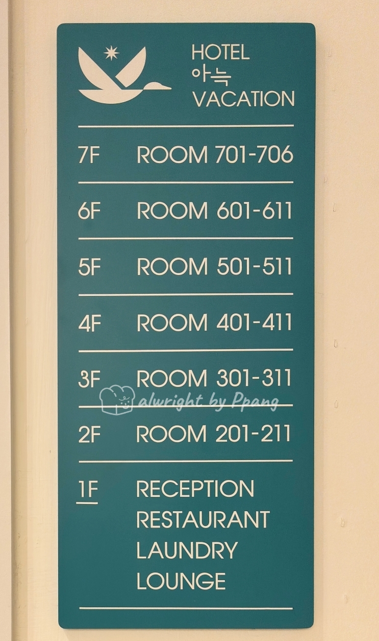 궁금했던 아늑 호텔을 숙박해 보니 곳곳에 세심한 노력이 보인다. 객실이 총 60개쯤 있는 것 같다. 서비스 공간은 모두 1층에 있다. 주차장은 문 앞 지상에 있다.