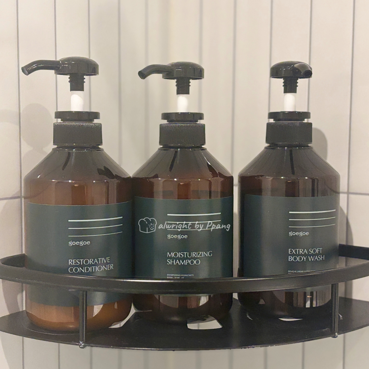 핸드솝은 페이셜폼으로 사용할 수 있다. 샤워부스에 샴푸, 컨디셔너, 바디워시가 있다.