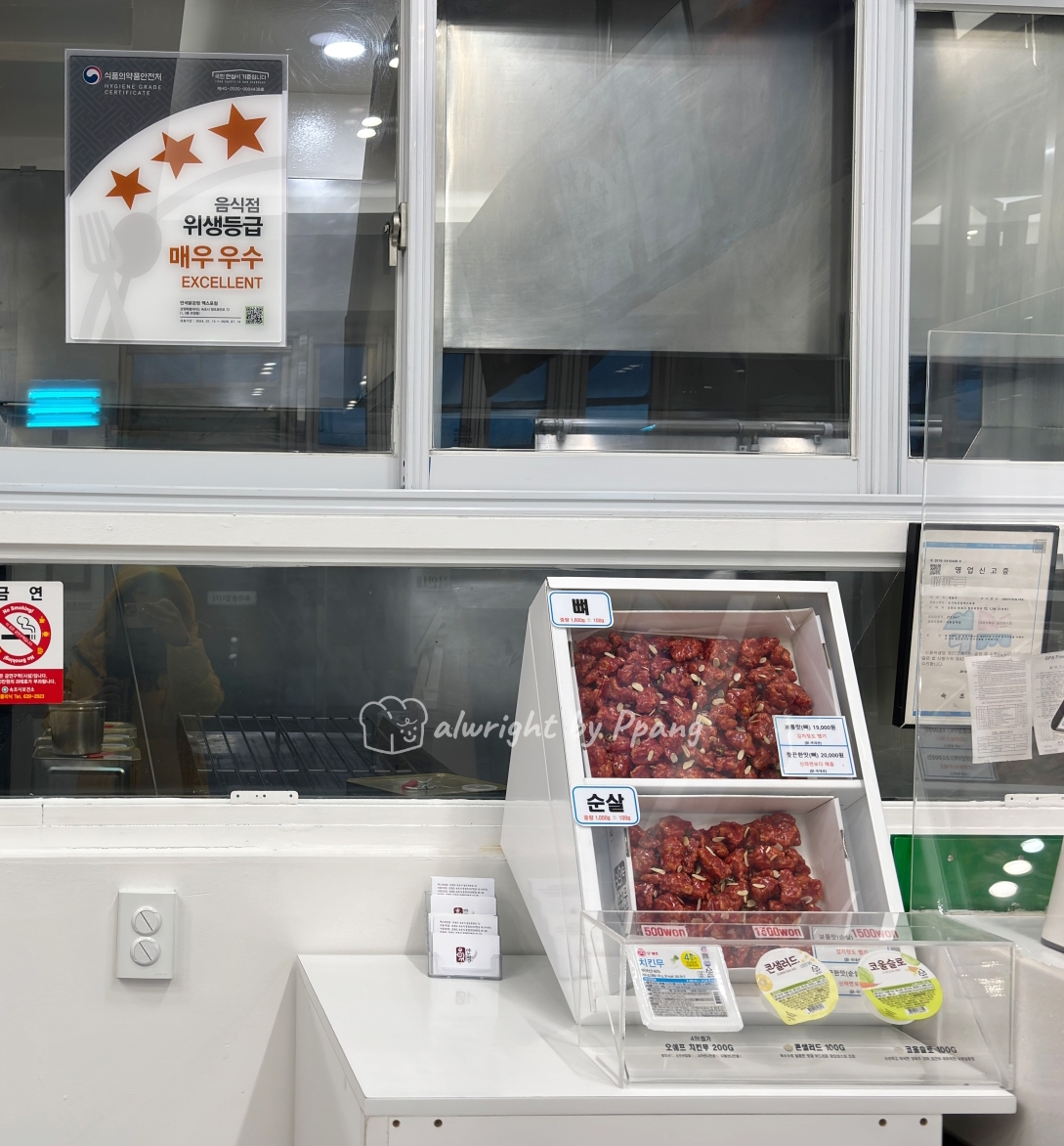 대부분 손님들은 닭강정을 디폴트로 먹는다. 여럿이 와서 섞어서 구매할 경우 후라이드를 함께 주문하는 것 같다.