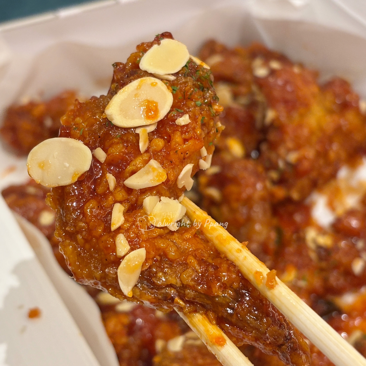 좋아하는 닭날개 부터 먹었다. 음.. 뼈 닭강정을 먹는 이유이다. 구별이 되잖아.