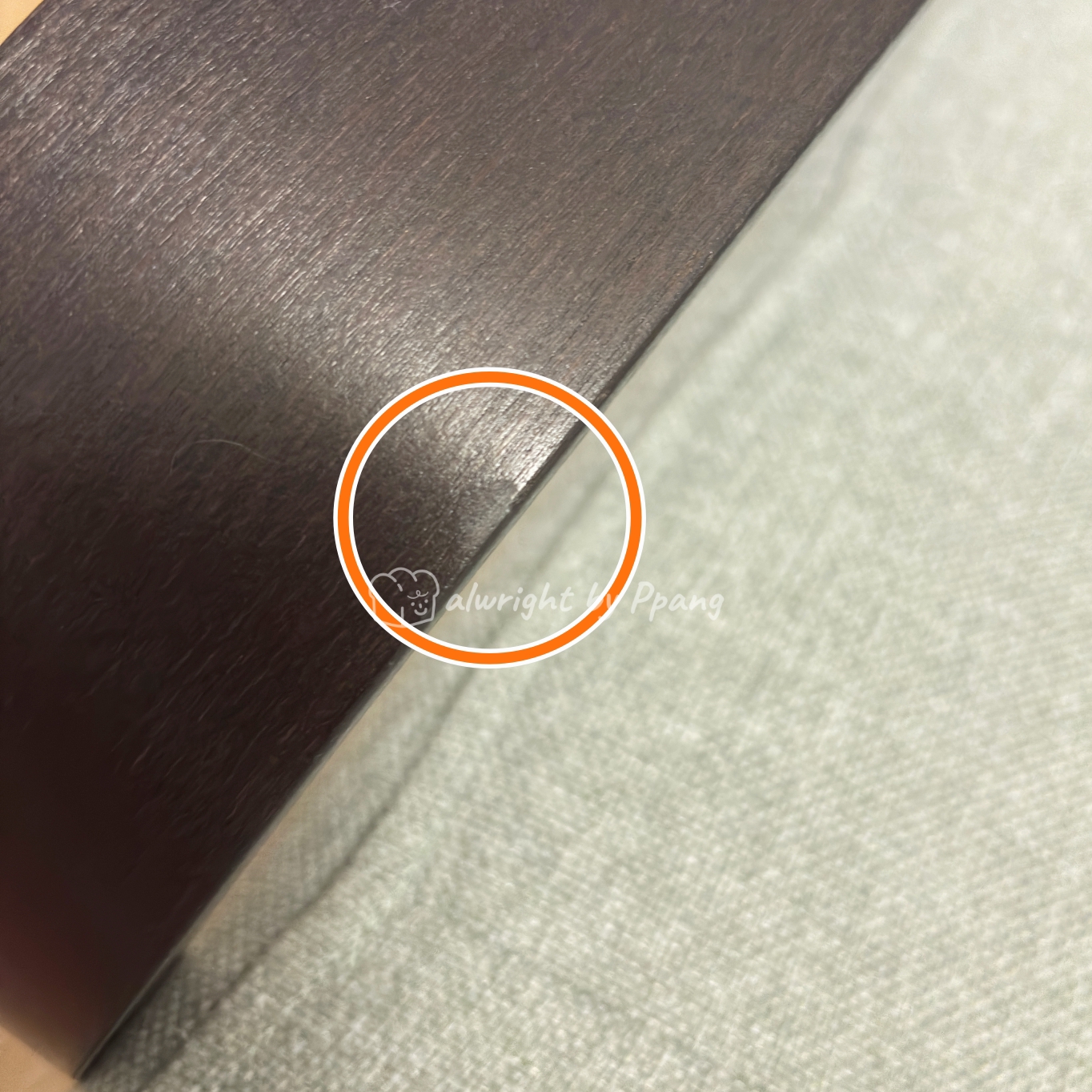 앗.. 팔걸이 부분 마감이 살짝... 칠 얼룩이 있네요. 마르기 전에 누가 손으로 콕 했나바요. 이케아 제품에 이 정도는 걍 애교로 패스 합니다.