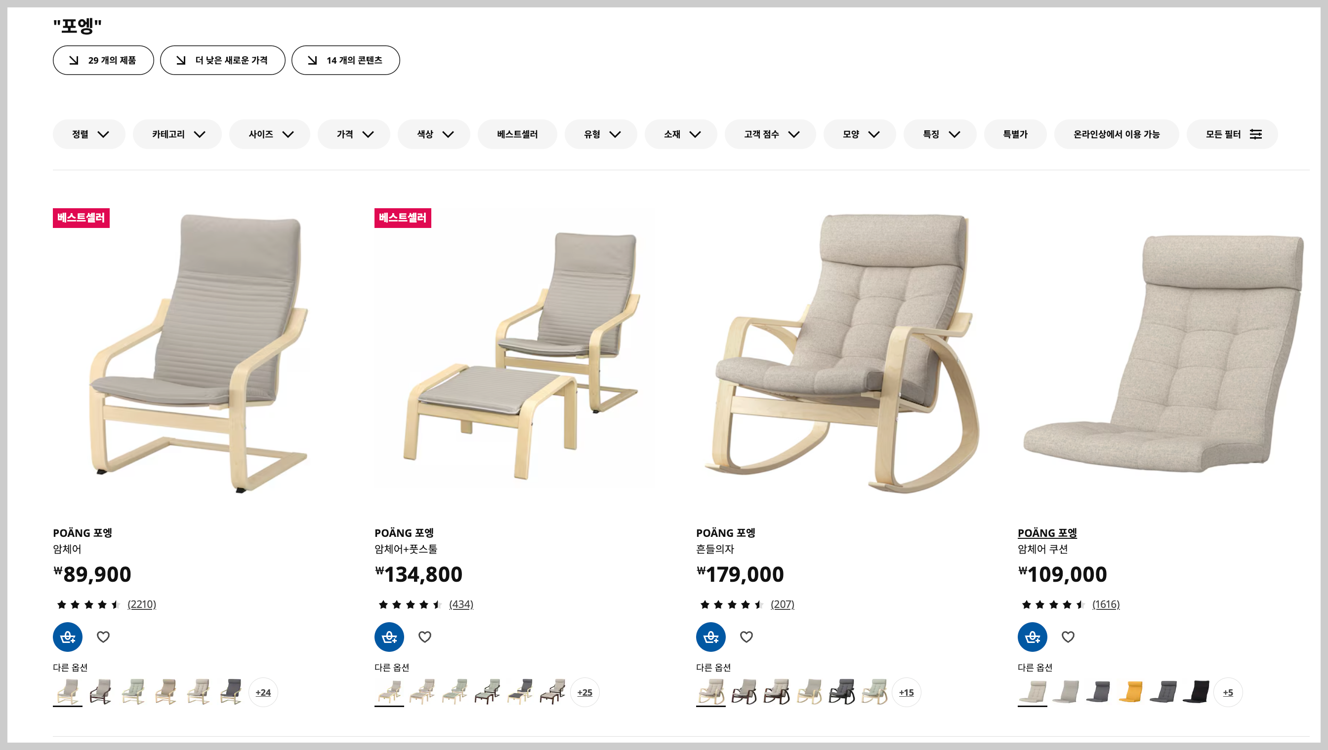 포엥은 자리를 많이 차지하지 않으면서 가격대비 안락하고, 다양하게 커스터마이징 할 수 있습니다.