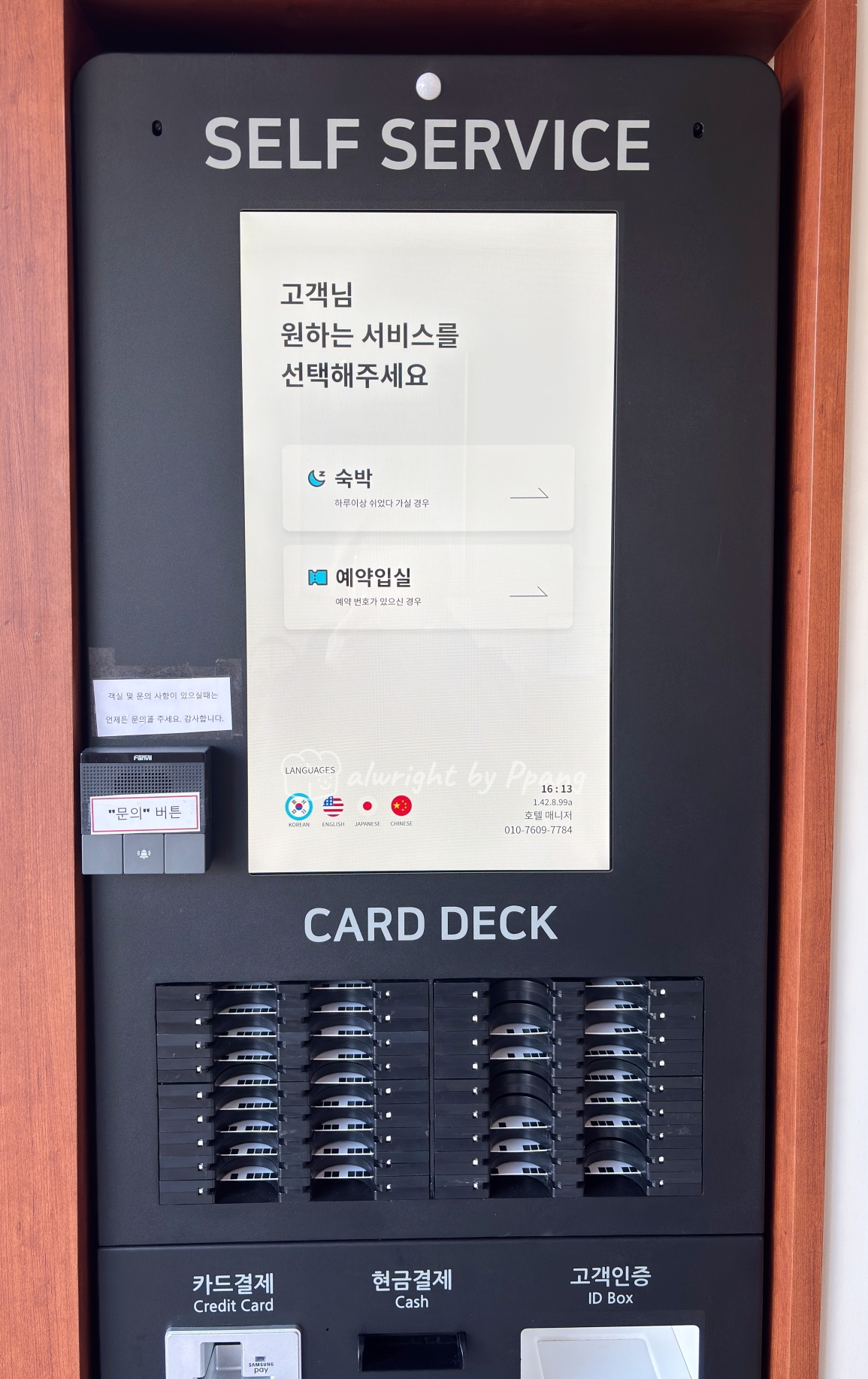 수림호텔 속초 by 아늑은 무인 운영 호텔이다. 가성비 호텔들이 키오스크 셀프 체크인을 많이 도입하는데 보통 프론트 데스크를 함께 운영하거나 어딘가 가까운 곳에 운영자를 찾을 수 있다. 그런데 여긴 입구부터 아예 없다. 어딘가 있을 거라고는 짐작 했지만 여긴 '찾을 생각 마라.' 말하는 것 같은 분위기랄까. ㅎㅎ.. 단호한 호텔이다.